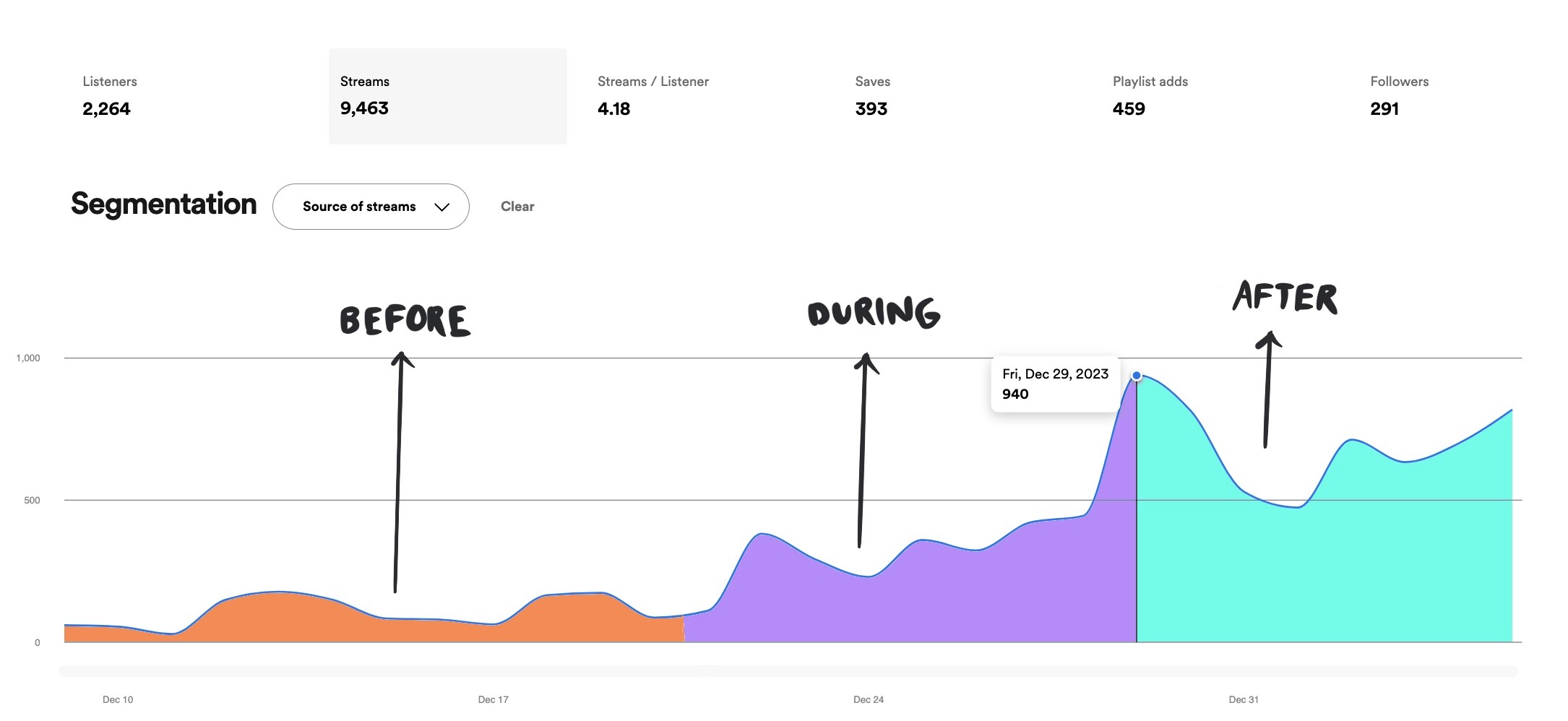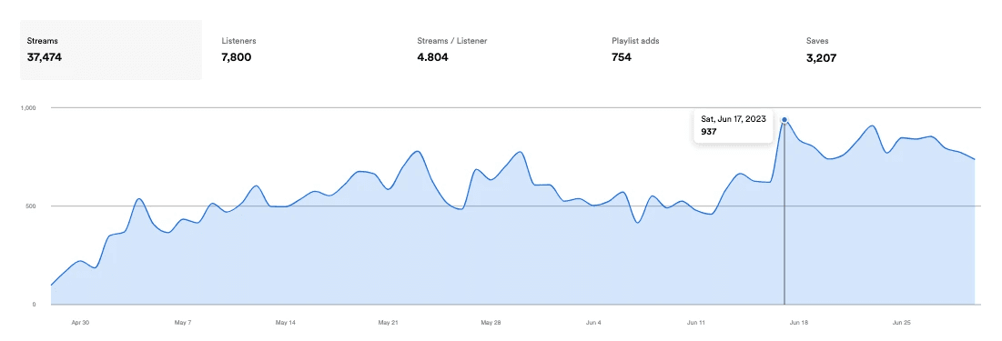 We grew the stream count even after the campaign ended by triggering discover weekly and release radar.