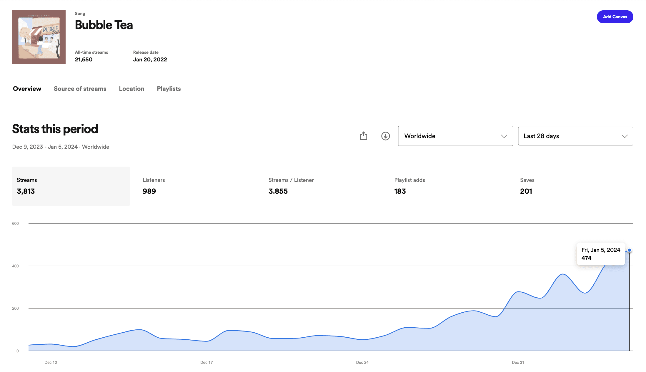 We landed over 450+ user generated and editorial playlists in a single marketing campaign for our artist.